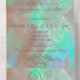 Elegante invitación "Madre de Perla", Boda verde "todo en uno" (incluye desgarrador R.S.V.P.) con complicadas floraciones. El fondo de la madre de la perla brilla con tonos coloridos, añadiendo un toque de elegancia irrisoria. Totalmente monogramado en un sofisticado guión gris, lo que le permite personalizar los detalles como prefiera. R.S.V.P. Mínimo
