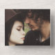 Elegante, botánico, moderno, sencillo, verde sabio y oro invitación a la boda todo en uno con código QR, monograma único con aves de pareja de amor dibujadas a mano, escritura a mano a la moda y foto personalizado de la parte trasera. Añade tu foto, detalles del boda y rsvp.