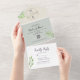Invitación Todo En Uno Elegante Boda Verde y Oro