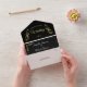 Esta elegante invitación de matrimonio "sellar y enviar" con acentos victorianos es perfecta para parejas que buscan resaltar el contraste de colores intemporal en su esquema de colores. Los detalles de su evento se muestran en fuentes clásicas junto a un opulento ornamento victoriano con complejos remolinos de vid y un atrevido telón de fondo. Al igual que el sabor de una bebida nueva y deliciosa, sus elegantes invitaciones nupciales pueden proporcionar una impresión dulce y duradera. Esta invitación es excelente para un boda formal/tradicional. El estilo y el color de las fuentes se pueden cambiar a cualquier estilo y color que desee haciendo clic en el botón "personalizar" . Algunas imágenes son extraíbles. La invitación incluye también una tarjeta RSVP perforada que puede ser dirigida individualmente o dejada en blanco para que pueda escribir a mano los detalles de la dirección de su invitado.