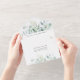 Todo ello en una tarjeta de invitación a la boda incluye eucaliptos pintados de color agua, hojas verdes, una invitación a la boda con una postal rsvp para que sus invitados corten y envíen de vuelta. Para una personalización más avanzada de este diseño, haga clic en el enlace "personalizar más adelante". También están disponibles los elementos coincidentes.