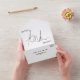 Esta elegante invitación a la boda en blanco y negro es perfecta para un boda moderno. el diseño es sencillo, con una elegante caligrafía negra sobre un fondo blanco.