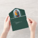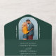 Invitación Todo En Uno Elegante caligrafía Foto Esmeralda Boda RSVP