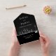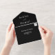 Esta elegante invitación de boda en blanco y negro es perfecta para una boda moderna. el diseño simple presenta elegante caligrafía blanca sobre un fondo negro.