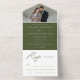 Invitación Todo En Uno Elegante caligrafía Olive Green Photo Boda
