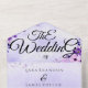 Convierta a sus huéspedes en una impresión inolvidable con el encanto atemporal de nuestra "Elegante caligrafía romántica púrpura". Dejen que su historia de amor se desarrolle con cada golpe de caligrafía y cada toque de morado, sentando las bases para una celebración llena de amor, alegría y recuerdos preciados.