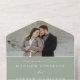 Elegante invitación de boda "todo en uno" con tu foto de compromiso en la parte superior de la invitación. Sus nombres y detalles bodas se muestran en letras blancas clásicas con acentos modernos de escritura caligráfica a lo largo de todo el diseño con un fondo verde sabio. La foto de la invitación a la boda todo en uno incluye una tarjeta RSVP desmontable que puede enviarse por correo como postal. Diseñado para coordinar con nuestra colección de bodas Elegante de caligrafía Sage Green.