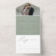 Invitación Todo En Uno Elegante caligrafía Sage Green Photo Boda