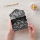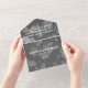 Haz que el 4º aniversario de bodas sea una celebración inolvidable con estas invitaciones conmemorativas todo en uno. La elegante letra blanca con confeti hexagonal sobre fondos de lino gris y negro añade un toque memorable para esta ocasión especial y aniversario. Personaliza con los nombres de la feliz pareja, fecha del lugar de celebración, dirección y hora, además de las direcciones de remitente y destinatario.