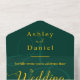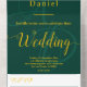 Esta elegante invitación de boda verde y dorada es perfecta para una boda moderna. el diseño simple presenta elegante caligrafía dorada sobre un fondo verde.