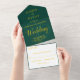 Invitación Todo En Uno Elegante Chic Verde Y Dorado Monograma De Boda