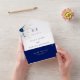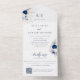 Invitación Todo En Uno Elegante código QR Boda floral azul blanco