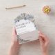 El delicado patrón floral, en tonos azul claro, beige y blanco, crea una sensación de belleza natural y gracia que es simplemente impresionante. El diseño de la tarjeta está perfectamente equilibrado, con un diseño limpio y moderno que resalta el motivo floral sin abrumarla. El uso de tonos claros azules y blancos es particularmente llamativo, ya que transmite una sensación de pureza, frescura y tranquilidad que captura perfectamente la esencia de una hermosa celebración boda. Haga clic en el botón "Personalizar" para obtener más información sobre esta plantilla. Podrá modificar el nombre, incluidos el estilo, los colores y los tamaños. Elementos coincidentes disponibles.