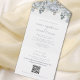 Invitación Todo En Uno Elegante código QR Floral azul RSVP en línea simpl