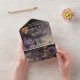 Invite a sus seres queridos con esta elegante invitación a la boda gótica morada negra con el Rosa de estilo moderno. Esta plantilla de invitación para bodas todo en uno presenta un elegante fondo floral de estilo vintage en lavanda, azul y morado. Personalizar el texto, incluye un código QR, y agrega tu sitio web y correo electrónico para una simple y minimalista invitación de boda todo en uno. Perfecto para la pareja que busca un diseño de invitación único y funcional.