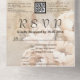Presentamos nuestra elegante invitación a la boda con temática de peones blancos de moda con un fondo color crema, marfil, oro texturado con peonías blancas y texto marrón oscuro, casi negro. En la parte superior de la invitación puedes personalizar con una foto personalizada que tendrá una cubierta transparente crema para que se mezcle con el esquema de color existente de esta invitación. Esta invitación es perfecta para las parejas que buscan una estética clásica para su día especial. El punto fuerte de esta invitación es el cómodo código QR, que permite a los huéspedes RSVP usar sus smartphones sin esfuerzo. Para los tradicionalistas, también hemos incluido una opción tradicional de RSVP de papel. Con el diseño "todo en uno", los huéspedes pueden desgarrar fácilmente la sección RSVP y enviarla de vuelta. Además, hemos proporcionado información por correo electrónico para los RSVP, lo que garantiza un proceso RSVP fácil y práctico. Personalizable completo, esta invitación también ofrece la opción de añadir una foto preciada, añadiendo un toque personal a su invitación boda.