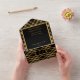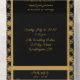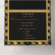 Una muy bella y elegante invitación a la boda con motivos negros y dorados. El texto es de color dorado y puede cambiar el nombre y la dirección de la respuesta desgarrando y añadir un sello para que su invitado lo devuelva.