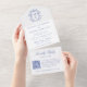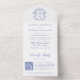 Invitación Todo En Uno Elegante Escudo azul Chinoiserie Monograma Boda