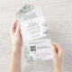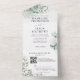 Invitación Todo En Uno Elegante Eucalyptus Gold Greenery QR Code Boda