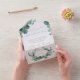 Tarjeta fotográfica de su Boda. Incluye 2 fotos. Floral Eucalyptus Blue y Green Wreath deja invitaciones de boda romántica Boda. Incluye una tarjeta postal fácilmente desmontable RSVP. Ideal para los temas de Boho Bohemian o Rustic Backyard Boodsy Forest Boda.