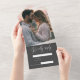 Presentamos nuestra tarjeta de invitación plegable todo en uno personalizable, diseñada para la pareja moderna que busca elegancia y simplicidad. Esta hermosa tarjeta presenta un aspecto limpio y sofisticado con espacio para su foto favorita de pareja. Tal vez incluso desde el compromiso de tu último viaje o vacaciones. Una invitación romántica y personal con un texto de escritura moderno y elegante en texto blanco sobre fondo gris oscuro, capturando la esencia de tu día especial en un diseño atemporal. Funcionalidad todo en uno: Esta invitación plegable incluye la invitación y RSVP, e incluye un código QR personal para agregar la dirección URL de la página de inicio de su boda para que sus invitados tengan toda la información que necesitan en un solo espacio.