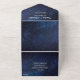 Azul marino, galaxia, celeste, constelación, mínimo, moda, elegante, rústico, matrimonio plegado moderno, Boda de código QR todo en una sola invitación. Triplio, juego de presupuesto. Puedes personalizarlo con tus propios detalles.