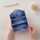 Azul marino, galaxia, celeste, constelación, mínimo, moda, elegante, rústico, matrimonio plegado moderno, Boda de código QR todo en una sola invitación. Triplio, juego de presupuesto. Puedes personalizarlo con tus propios detalles.