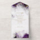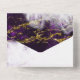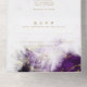 Invitación plegable triple de recepción de boda y RSVP todo en uno: hermosa geoda de cristal de piedra preciosa amatista púrpura real acentuada con vetas de pepita de oro jaspeado brillante y cristal de cuarzo - reverso coordinado.