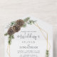 Con un moderno guión de caligrafía de moda y un marco geométrico dorado decorado con vegetación de acuarela de invierno y conos de pino y acentuados con bayas de nieve, estas invitaciones nupciales con temática invernal y RSVP desgarradora proporcionan elegancia y comodidad en un paquete romántico. Encuentra productos coincidentes en la colección, y siéntete libre de enviarme un mensaje a través de Zazzle Chat si necesitas ajustes de diseño o más productos a juego.