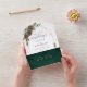 Invitación Todo En Uno Elegante guión de invierno verde Pine Cone Boda