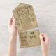 Esta caprichosa pero elegante invitación a la boda ha sido diseñada para parecerse a una hoja de caracteres de juego de mesa. Evocando la sensación de un pergamino medieval, esta invitación es perfecta para un periodo, RPG, o boda con temática de fantasía.