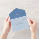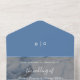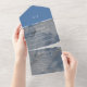 Todo esto en una tarjeta de invitación a la boda es especial. Obtienes tu tarjeta de invitación cambiable y la tarjeta RSVP todo en uno. Usted puede personalizar la simple y mínima tarjeta de invitación a la boda con su monograma, introducción, nombres, ocasión, fecha, dirección, rsvp, comidas y otros colores y fuentes de fondo a sus preferencias. Incluso puedes cambiar la imagen o ponerla en ella. Se trata de una mezcla armoniosa de tonos azules polvorientos con una tipografía blanca adecuada. El diseño es de mármol costero. Es un diseño fotográfico o de imagen cambiable. Puedes sellar con elegancia y mandar esta invitación tridoblada a una boda económica. Enviar la tarjeta postal RSVP de vuelta al remitente. Haz que este diseño especial sea tuyo y sienta este diseño personalizado para tu futuro boda. Hobinishop