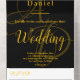 Esta elegante invitación a celebrar bodas en negro y oro es perfecta para un boda moderno. el diseño es sencillo y elegante, con una caligrafía dorada sobre un fondo negro.