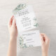 Invitación Todo En Uno Elegante Moda Eucalyptus Wash Gold Greenery Boda