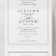 Elegante Monograma Boda blanco y negro todo en una sola invitación. Hay una lágrima en la tarjeta RSVP. Haga clic en el botón de edición para personalizar de este diseño.