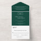 Invitación Todo En Uno Elegante Monograma Simple Verde Boda Moderno