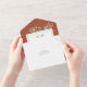 Todo en una invitación de boda con sus iniciales de monograma y elegantes hojas de acuarela botánica sobre un fondo de terracota con un borde de marco dorado de moda. La invitación incluye una tarjeta RSVP perforada que puede ser dirigida individualmente o dejada en blanco para que usted escriba a mano los detalles de la dirección de su invitado. Diseñado por Thisisnotme©