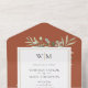 Invitación Todo En Uno Elegante Monograma Verdor Terracotta Boda