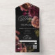 Invitación Todo En Uno Elegante Moody Ahogado Rust & Burgundy Floral QR C