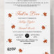 Esta elegante invitación a la boda de otoño es perfecta para un boda moderno de otoño. El diseño sencillo presenta hojas de otoño naranja con una tipografía elegante en negro y naranja sobre un fondo blanco.