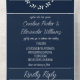 Invitación Todo En Uno Elegante Navy Blue Script Moderno RSVP Código QR T