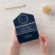 Navy Blue, elegante, rústico, moderno matrimonio plegado, Boda de código QR todo en una sola invitación. Triplio, juego de presupuesto. Puedes personalizarlo con tus propios detalles.