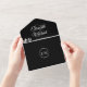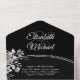 Invitación Todo En Uno Elegante negro Código QR Boda de Monograma Floral