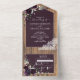 Invitación Todo En Uno Elegante Plum Purple Rustic Wood Lace Boda