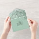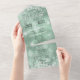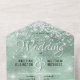 Todas ellas cuentan con una decoración verde azulada de estilo acuático, con un confetti purpurina falso y bengalas luminosas que le confieren un toque sofisticado y lujoso. Completa con guión caligráfico y tarjeta RSVP despedazada. Ideal para los bodas acuáticos y los bodas de lujo.