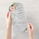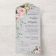Invitación Todo En Uno Elegante Rubor Pink Floral Bouquet en Boda gris