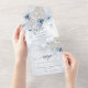 Invitación Todo En Uno Elegante Rústico Floral Azul Polvoriento