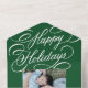 Invitación Todo En Uno Elegante Script Green Happy Holiday Card