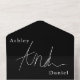Esta elegante invitación de boda en blanco y negro es perfecta para una boda moderna. el diseño simple presenta elegante caligrafía blanca sobre un fondo negro.