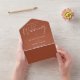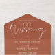 Todo en una invitación de boda con elegante tipografía de fondo de terracota. La invitación incluye una tarjeta RSVP perforada con un código QR. Diseñado por Thisisnotme©